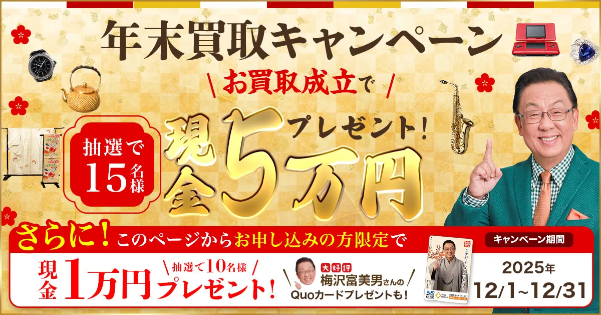 今ならなんと、12月31日までに査定依頼をすると、抽選で15名様に現金5万円が当たるキャンペーン実施中です!
