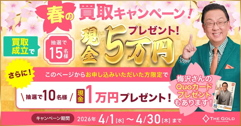 | キャンペーン | 急げ!4/30まで 現金5万円プレゼント中! | – | – |